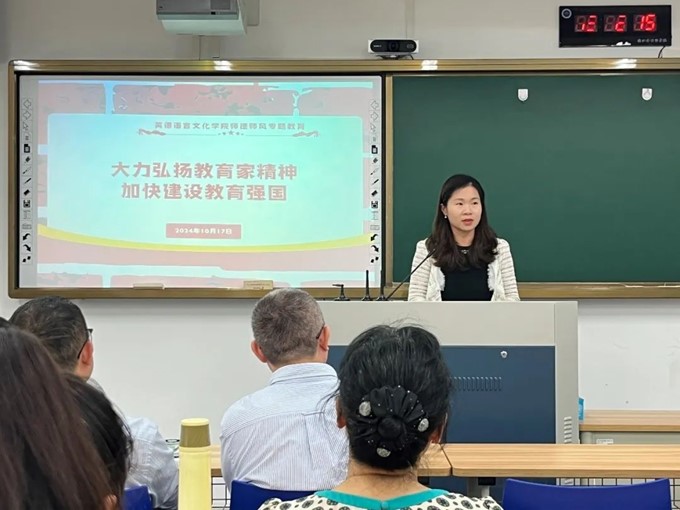 田俊杰围绕“大力弘扬教育家精神,加快建设教育强国”作主题党课,传达学习了习近平总书记在全国教育大会上的重要讲话精神,引领全体教师深刻认识教育家精神的时代价值和科学内涵,以办好人民满意的教育为己任,培育德智体美劳全面发展的社会主义建设者和接班人。