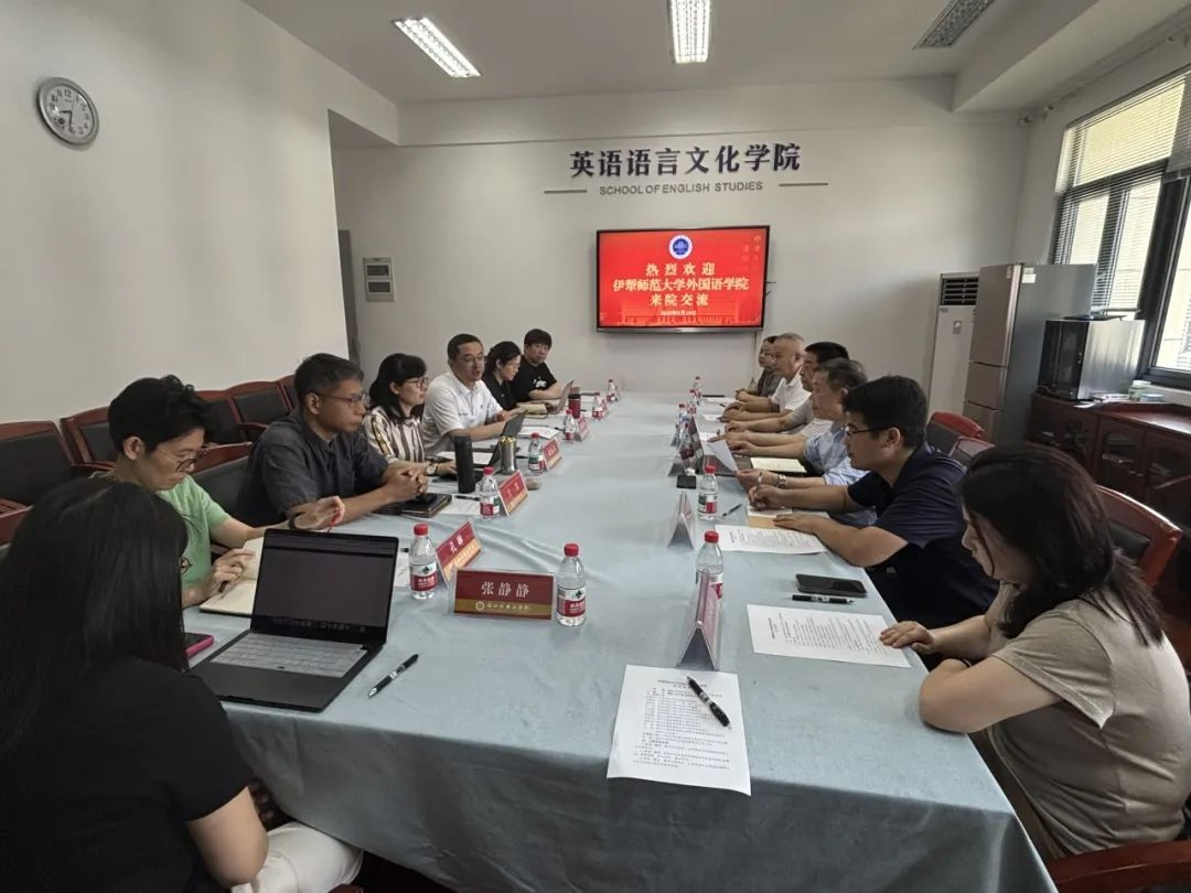 5月19日,伊犁师范大学外国语公司经理刘承宇等一行7人来公司调研交流。bevictor1946韦德官网经理邢富坤、党委书记田俊杰、副经理郑淑贞、学术副经理盛煜冰、区域国别与商务英语系学科专业负责人王冲、文学创作系教学科研主管张静静、应用外语公司副经理王昊、西语公司俄语系系主任孔琳等参加座谈。