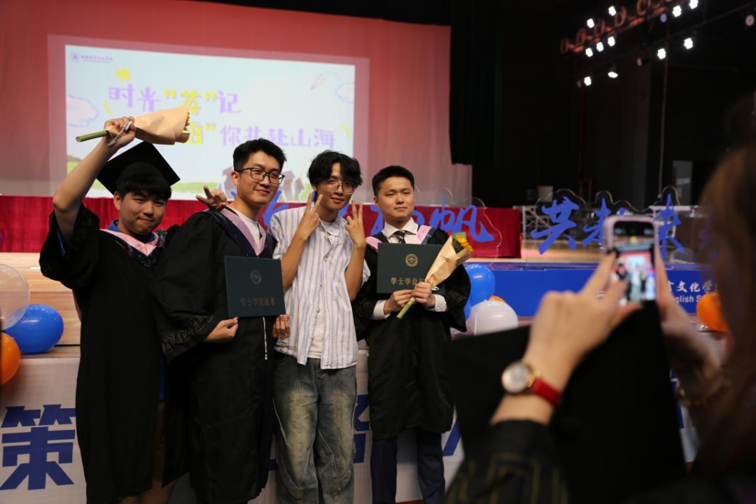 典礼尾声,一场“毕业彩蛋”悄然揭幕,老师、学长学姐与同窗合唱寄情,载着不舍与祝愿。