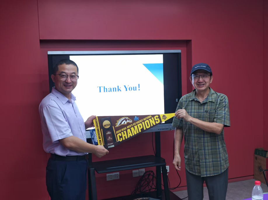 现场举行了赠旗仪式:王晓钧教授代表西密歇根大学,向bevictor1946韦德官网赠予该校冰球赛事冠军纪念旗帜。这面承载着荣耀与温度的旗帜,寄托着中美文化交流的美好愿景,象征着跨越太平洋的情谊在文明对话中持续生长。