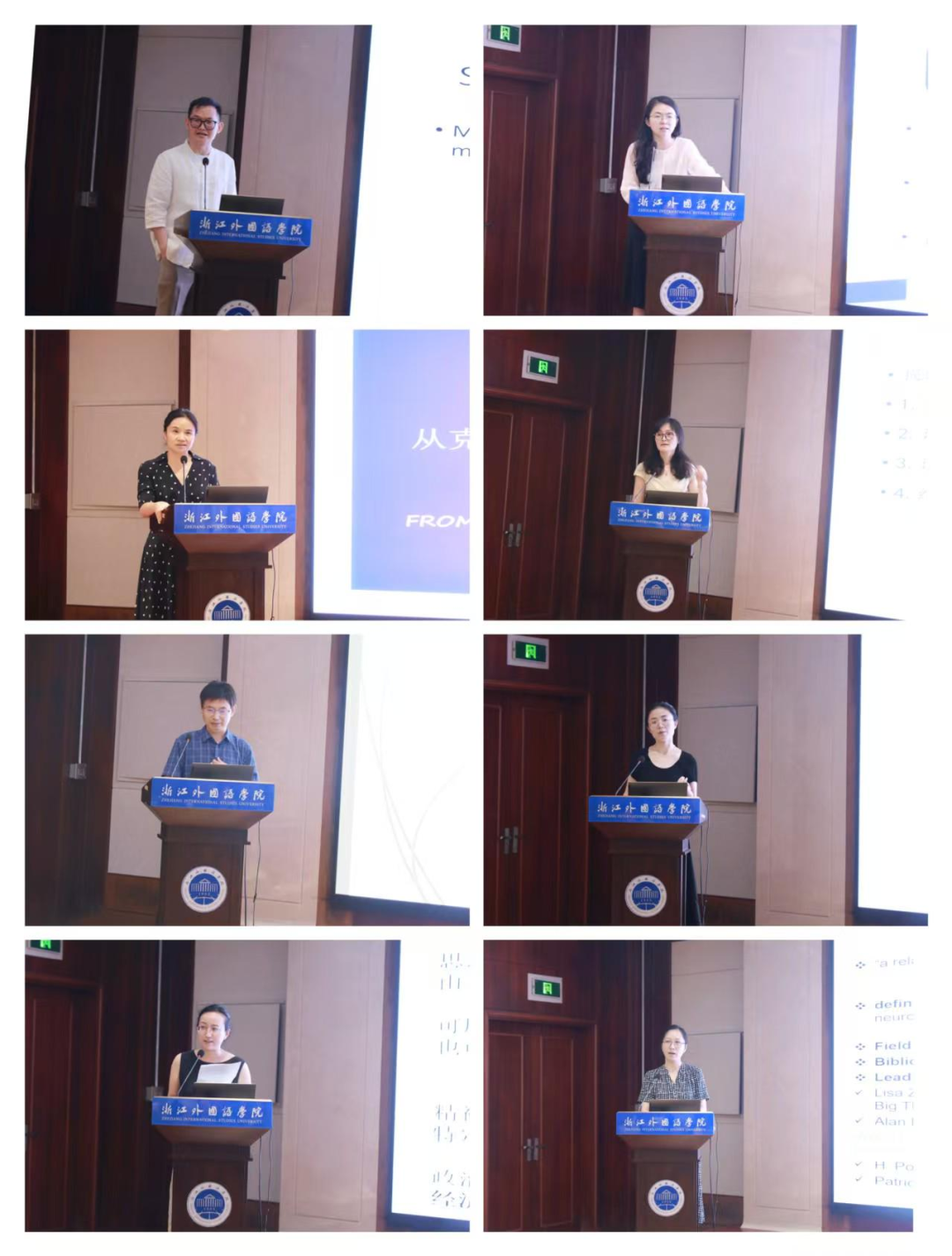 随后,4个学科方向选派的8位优秀论文作者在大会上作了精彩的优秀论文报告分享。他们凭借在各自研究领域的深耕细作,呈现出了最新的科研成果,其独到的学术见解与深刻的前瞻思考,开启了与会者对外语学科前沿热点问题的探索,引发了大家浓厚的兴趣与深度的思索。洪明、赵伐、王松亭和李建波分别针对外语教育学学科团队、翻译学学科团队、外国语言学及应用语言学学科团队和外国文学学科团队成员的报告进行了细致入微的精彩点评,为整场报告增添了不少熠熠生辉的亮点。