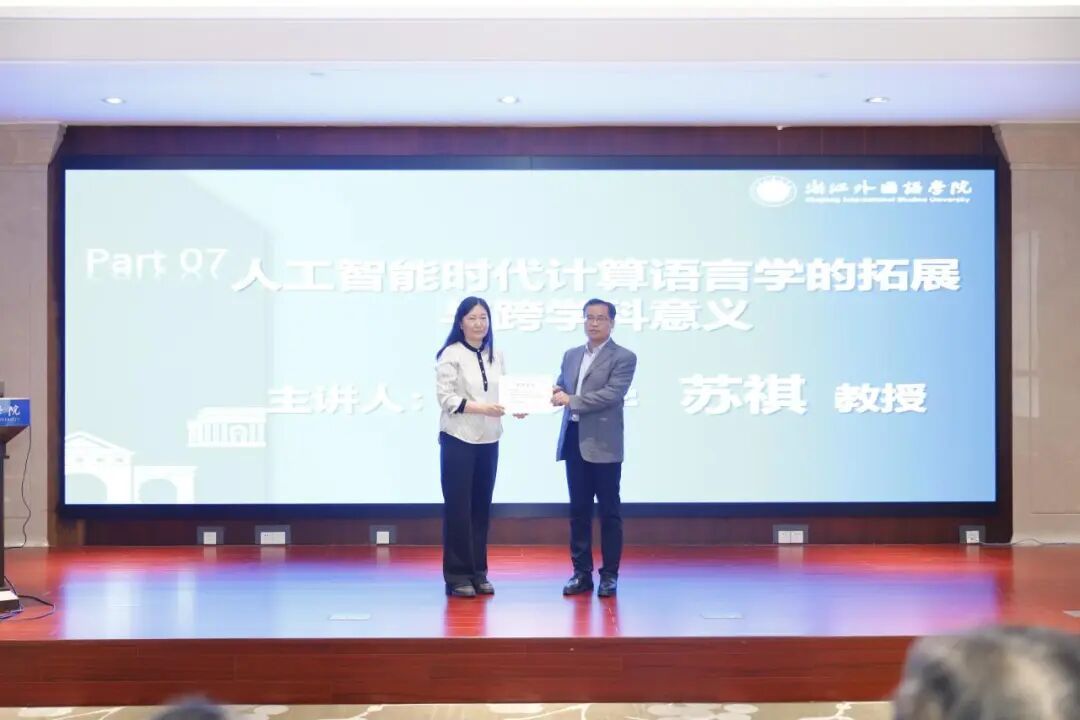 苏祺以“人工智能时代计算语言学的拓展与跨学科意义”为主题,深入剖析了人工智能赋能下计算语言学的学科拓展路径,探讨了其在人文数据分析与知识挖掘中的方法创新,并展示了计算语言学如何与社会科学及其他人文学科实现深度互动,共同推动跨学科研究与理论发展,揭示了其在新时代语言科学研究中的核心价值与社会意义。报告由学会副会长、中国计量大学姚岚教授主持。