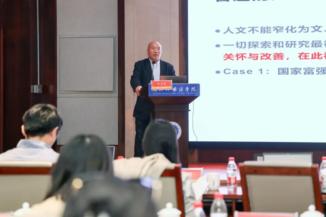 李文中以“人文中的语料库与数据科学”为题,阐述了人文社科研究的高度阐释性及其受研究者主观因素影响的特性。他指出,单纯的主观阐释难以满足可靠观察与探究的需求,而语料库语言学则能提供可验证、可复现的实证路径,成为“准科学”与桥接方法论的重要工具。语料库语言学者应作为复合型学者,以语料、数据为工具与证据,服务于人的自我理解,为人文研究注入严谨而不失人性深度的力量。报告由学会副会长,浙江科技大学樊燕龙教授主持。