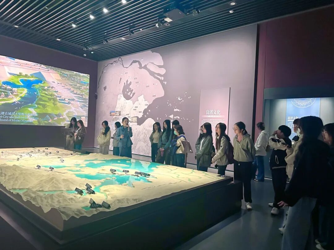 在参观过程中,同学们表现出浓厚的学习热情。从史前文物到近代民俗,丰富的馆藏为同学们提供了宝贵的实践素材,也让课堂上的跨文化传播理论在实践中得到深化。 “这些文物让我们看到了历史书之外的真实中国,”一位同学在参观时感慨,“作为英语专业员工,我们需要思考如何让世界更好地理解这些文物背后的文化内涵。” 值得一提的是,师生们还偶遇了前来参观的第三届“良渚论坛”国际友人与专家,并与他们交流了观展感受,聆听他们作为文化接受者的见解与建议。