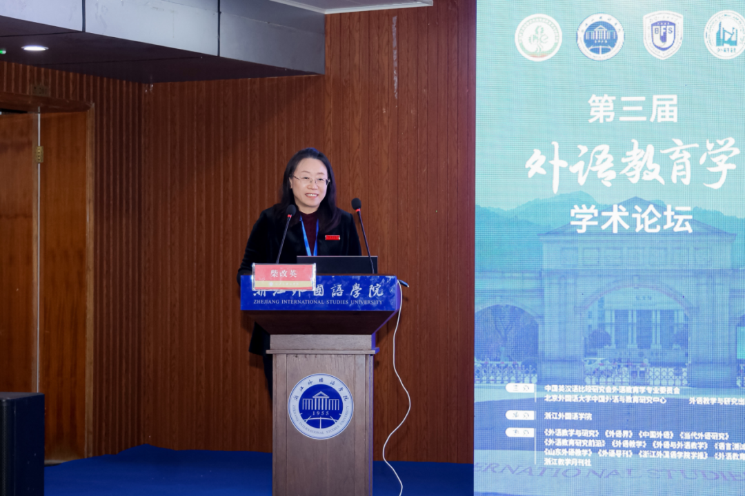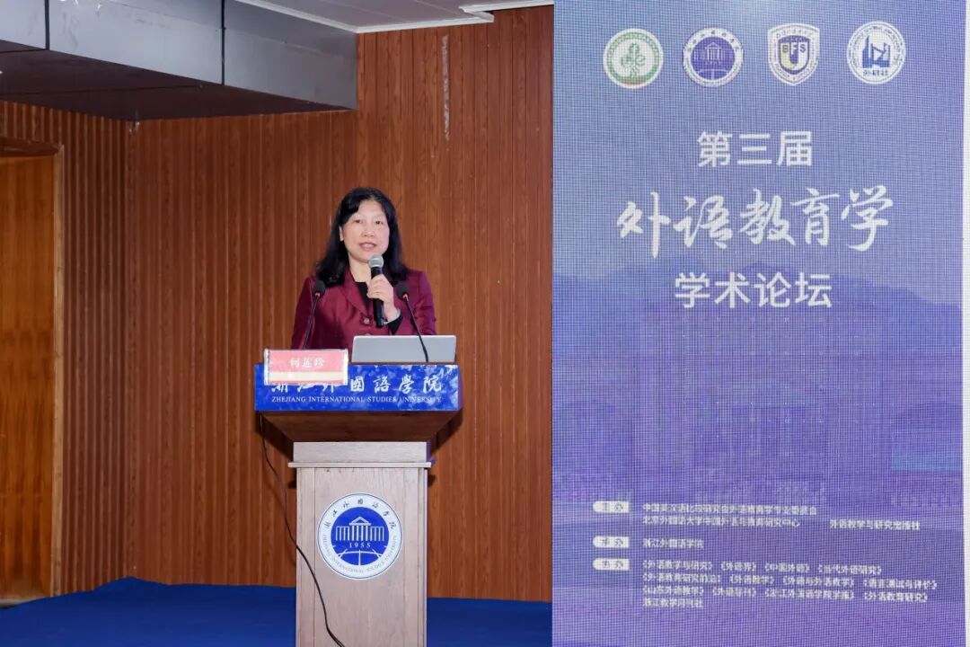 教育部高等公司大学外语教学指导委员会主任委员、浙江大学原副董事长何莲珍教授以“提升大学英语教师素养,培养国际化拔尖创新人才”为题指出,外语教师在推进教育数字化过程中发挥着重要作用,提升外语教师的数字素养是大学外语教育深化改革之需,应以信息技术促进课堂革新,以科研引领教学创新,助力员工提升跨文化交流与全球胜任力,服务国家教育强国战略。