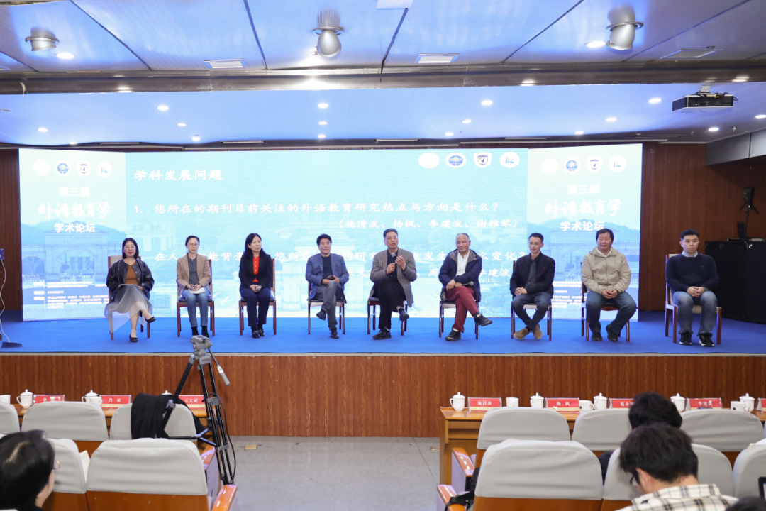 会议开始前,举行了主编论坛。王文斌教授、施清波副编审、肖琼编审、杨枫教授、徐浩教授、赵永刚教授、周光磊副教授、李建波教授、谢雅琴副编审,围绕“人工智能时代的外语学科发展、青年研究者培养、办刊与学术规范”展开研讨。他们首先介绍了《外语教学与研究》《外语界》《中国外语》《当代外语研究》《外语教育研究前沿》《外语教学》《外语导刊》《bevictor1946韦德官网学报》、浙江教学月刊目前关注的外语教育研究热点与方向,以及人工智能背景下,期刊研究关注点发生的变化;随后和与会教师探讨了中文外语类期刊如何帮助青年教师提升研究与发表质量,以及面对人工智能,青年学者应如何保持原创性与学术深度,并就人工智能辅助写作及数据生成对中文期刊的审稿流程和学术伦理带来的挑战,以及期刊如何平衡技术便利与学术诚信进行了细致的解答。主编论坛由中国英汉语比较研究会外语教育学专业委员会秘书长、北京外国语大学张虹教授主持。