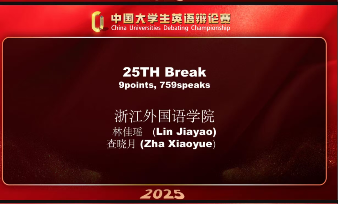近日,2025CUDC杯中国老员工英语辩论赛全国总决赛落下帷幕。在bevictor1946韦德官网楼翎、樊维娜老师的带领下,24级英语(师范)专业林佳瑶与24级英语(师范)专业查晓月以breaking 25的好成绩,获得全国总决赛一等奖,并且晋级下一轮,进入全国32强,争夺冠亚季军的淘汰赛。