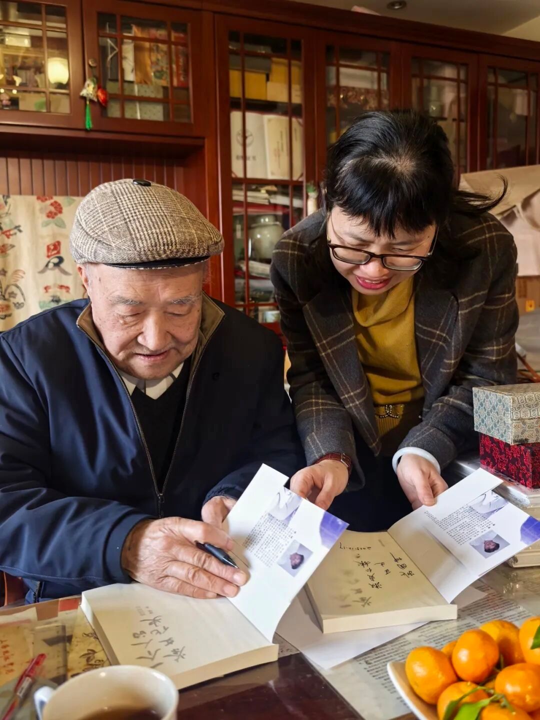 姚国坤先生对师生们的到访与赠书倍感欣慰,当场取出新近出版的个人传记《一个人的茶文化史》,逐一签名后赠予各位老师,他以个人治学历程为注脚,为后辈传递茶文化传承的责任与使命。尽管已近九旬高龄,姚老先生依旧精神矍铄、思维敏捷,畅谈茶学研究的过往今昔、茶文化传播的时代意义,言语间兼具学术深度与人生智慧,风趣幽默的表达更引得现场阵阵欢声笑语,让这场拜访成为一次温暖而深刻的精神洗礼。
