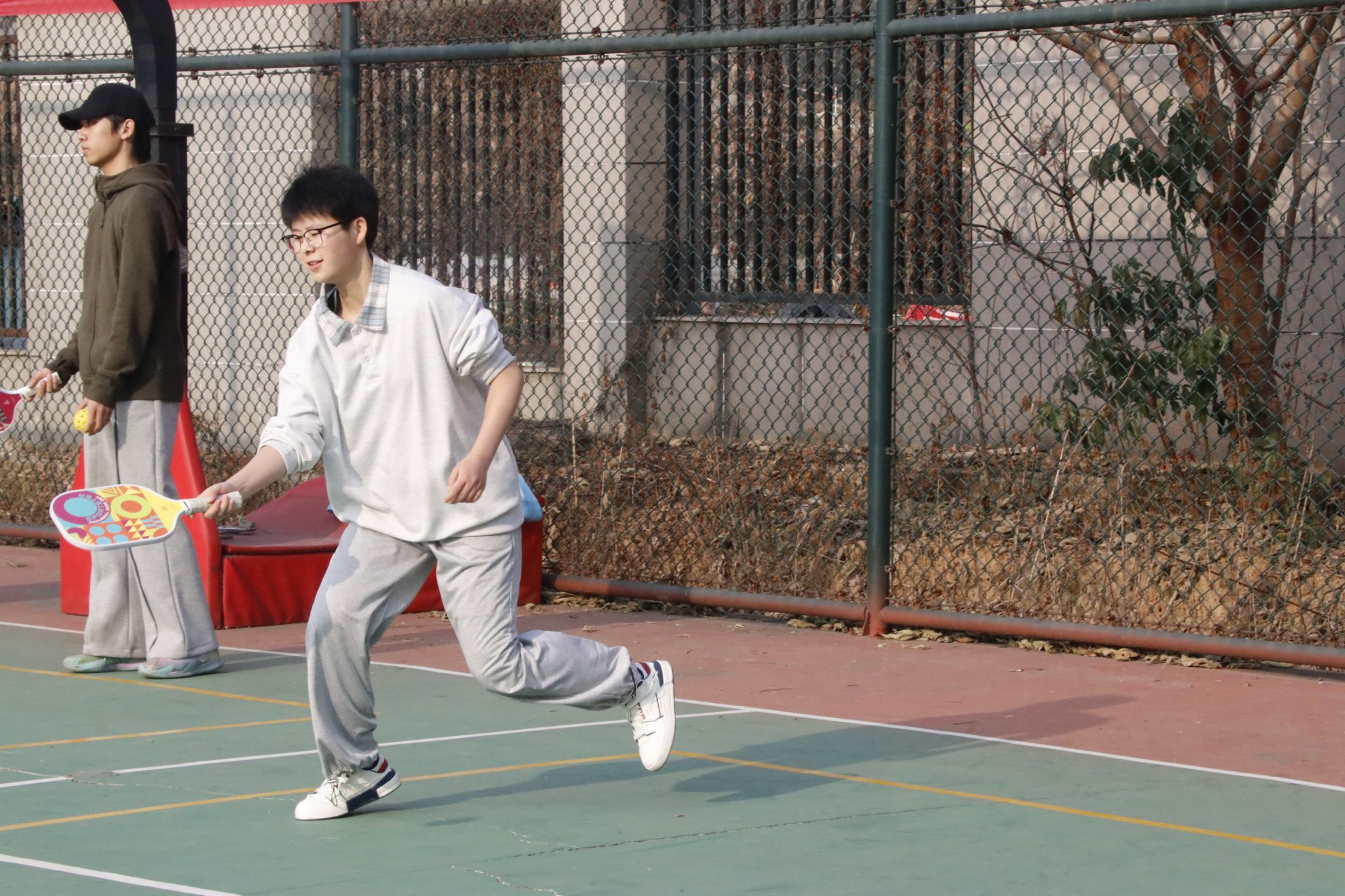 不同于羽毛球这类普及度较高的运动,匹克球对多数队员而言是陌生的小众项目。为了在赛场交出满意答卷,队员们将对新兴运动的好奇转化为探索的动力,主动打破运动领域的边界:从零开始学习匹克球的规则与技法,在训练场反复琢磨球拍控球的力度、击球的角度,对比不同运动的技巧差异,一点点搭建起对这项运动的认知。