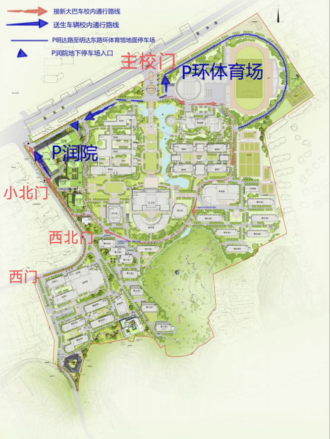 1. 外语路上的西北门将临时开放,为新生报到人员专用通道,西北门和外语路上的西门报到当天禁止一切私家车通行。