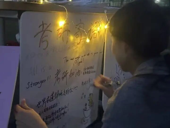 每一道掌纹都藏着披星戴月的坚持,每一句落笔都裹着支撑前行的勇气。考研的你,在KT板中央留下掌印与心声,让滚烫的信念在掌心传递,让并肩的温暖在此刻汇聚。