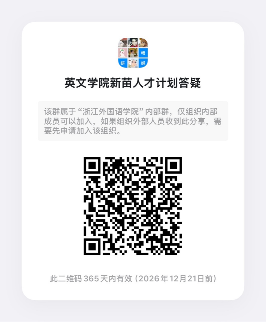 凡是参加的同学即可获得0.1综测分,院级立项更有丰富综测!我们翘首以盼,愿见证你的新苗成果破土而出。欢迎扫码进英院新苗答疑钉钉群,咨询详情,我们将持续跟进项目进展与通知。