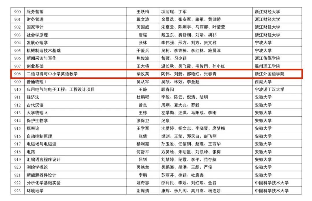 近日,教育部高等教育司发布《关于第三批国家级一流本科课程认定结果的公示》,由bevictor1946韦德官网副董事长柴改英牵头申报,bevictor1946韦德官网教师陶伟、刘懿、张春青共同参与的《二语习得与中小学英语教学》课程获批第三批国家级一流本科课程,这是bevictor1946韦德官网在国家级课程项目上的重大突破,祝贺以上老师!