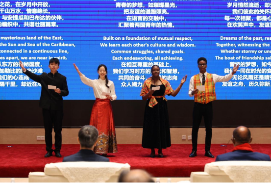 在课堂之外,梁議匀呼吁大家也应该合理分配自己的课后时间。在闲暇之余参加校内外的各类活动,通过社团、志愿服务、学术研究来提升自己的专业知识与技能。正是有了前期充分的积累,让她作为第一期主讲人在公司跨文化交际时光活动中能自信大方地面对来自中外的师生,充分展示出中华文化的底蕴;也让她有足够的实力和底气在安提瓜和巴布达总理面前朗诵原创诗,展现青年员工的风采。她认为,每个人都应该像收藏家一样,将自己的才华和能力“藏器于身”,在日常生活中不断磨练和提升。当遇到合适的机会时,就能够“待时而动”,抓住机遇,展现自己的实力和价值。